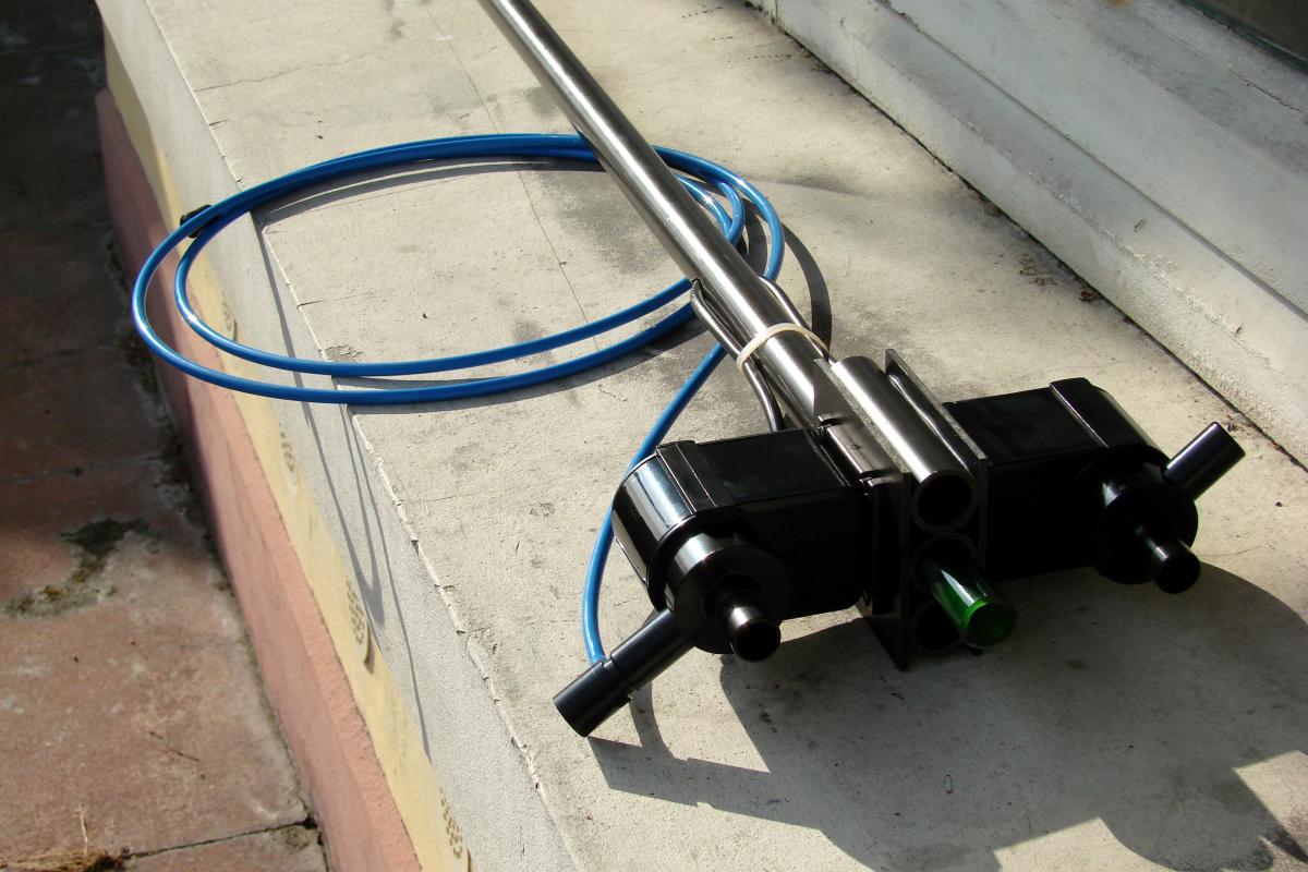 Au niveau de l'écumeur, le nettoyage de la colonne est indispensable afin que l'écume monte. Un système d'injection d'eau osmosée dans cette optique permet le nettoyage de cette colonne.