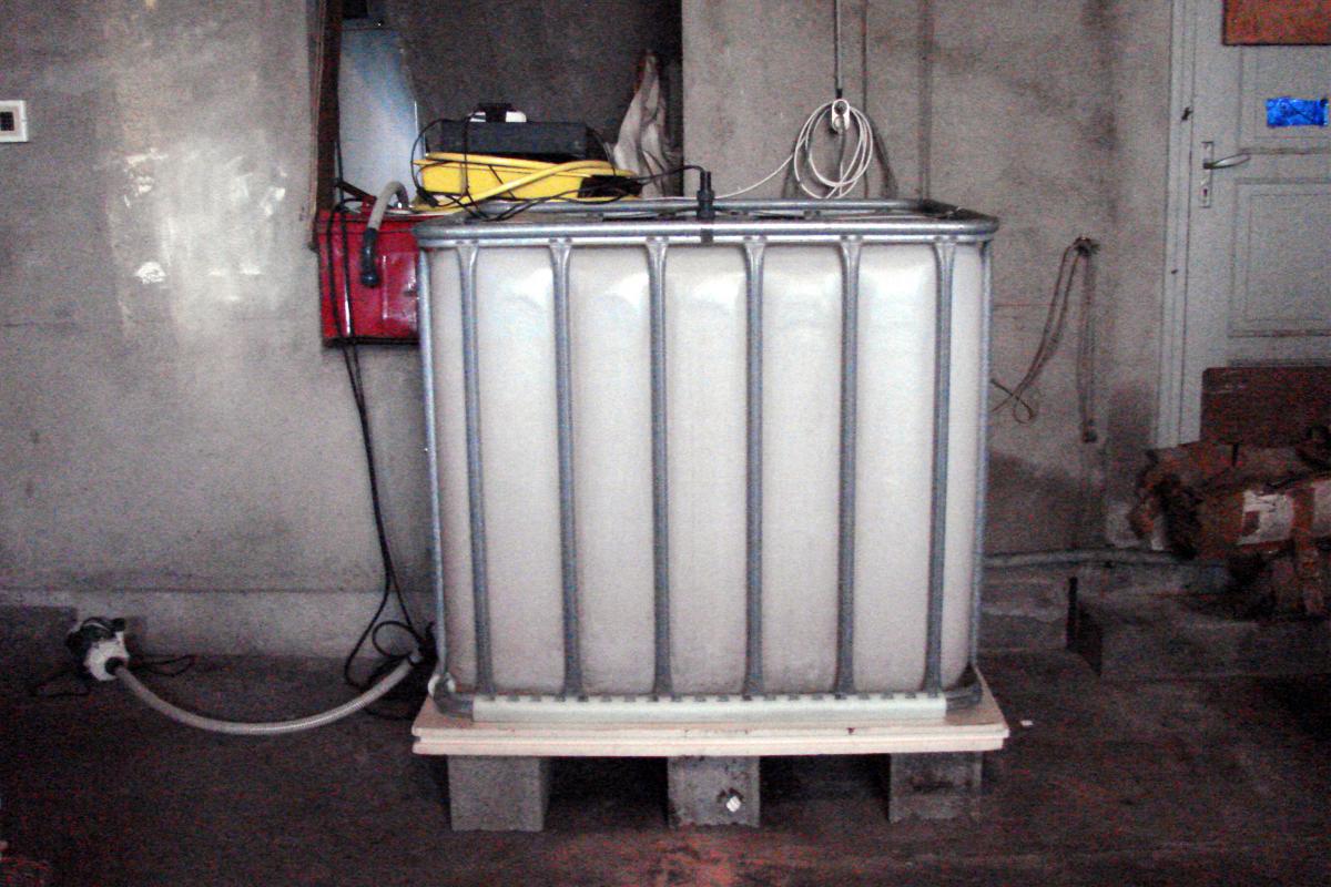 Rentré chez moi je stocke cette eau dans un ancien aquarium de 400L et une cuve de 1000L