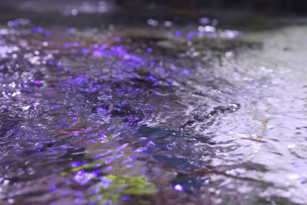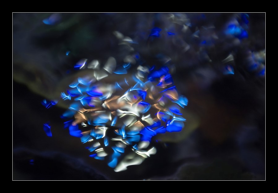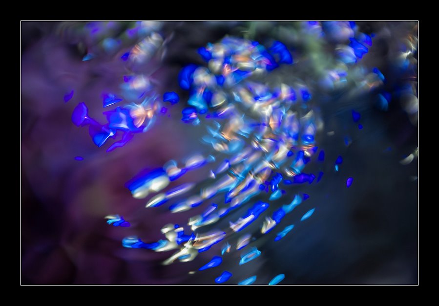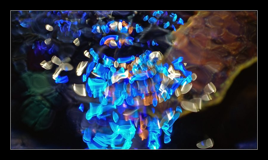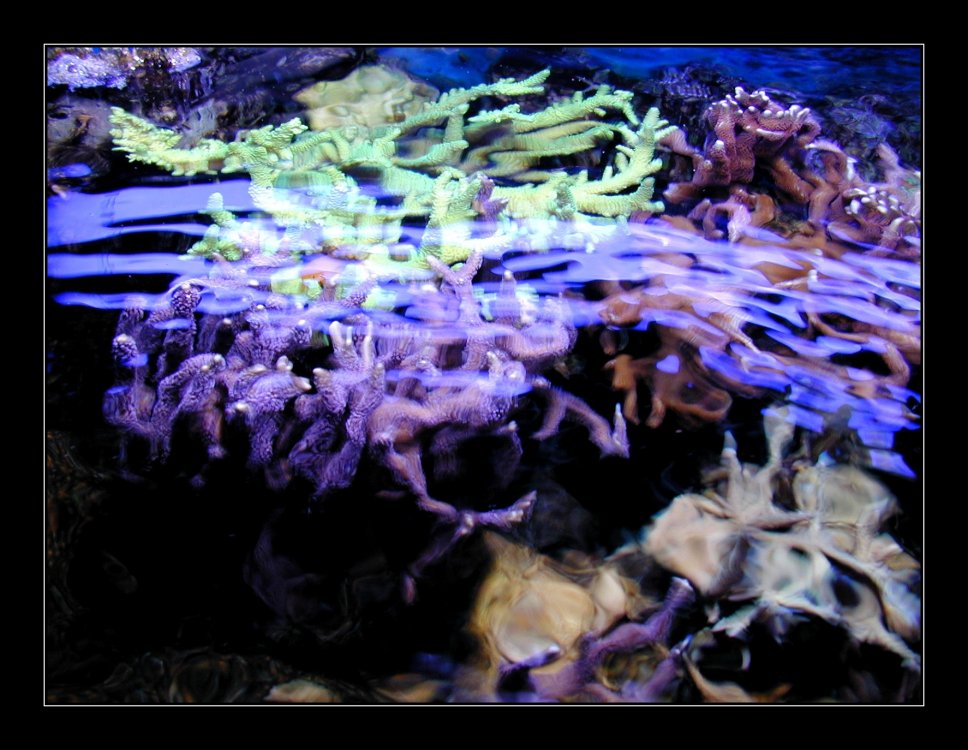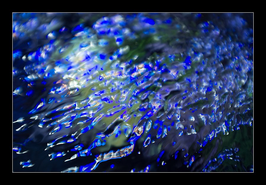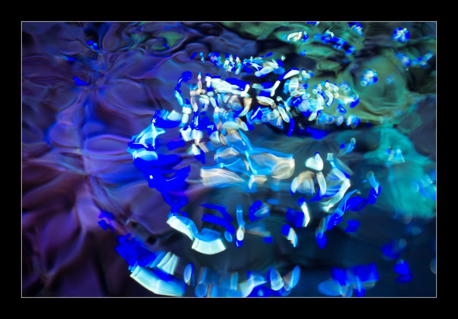 Jeux visuels. Jeux de lumière, interface de pénétration, de diffraction, de réflexion. Jeux d'interface d'échanges gazeux, l'eau dans l'air, de l'air dans l'eau.