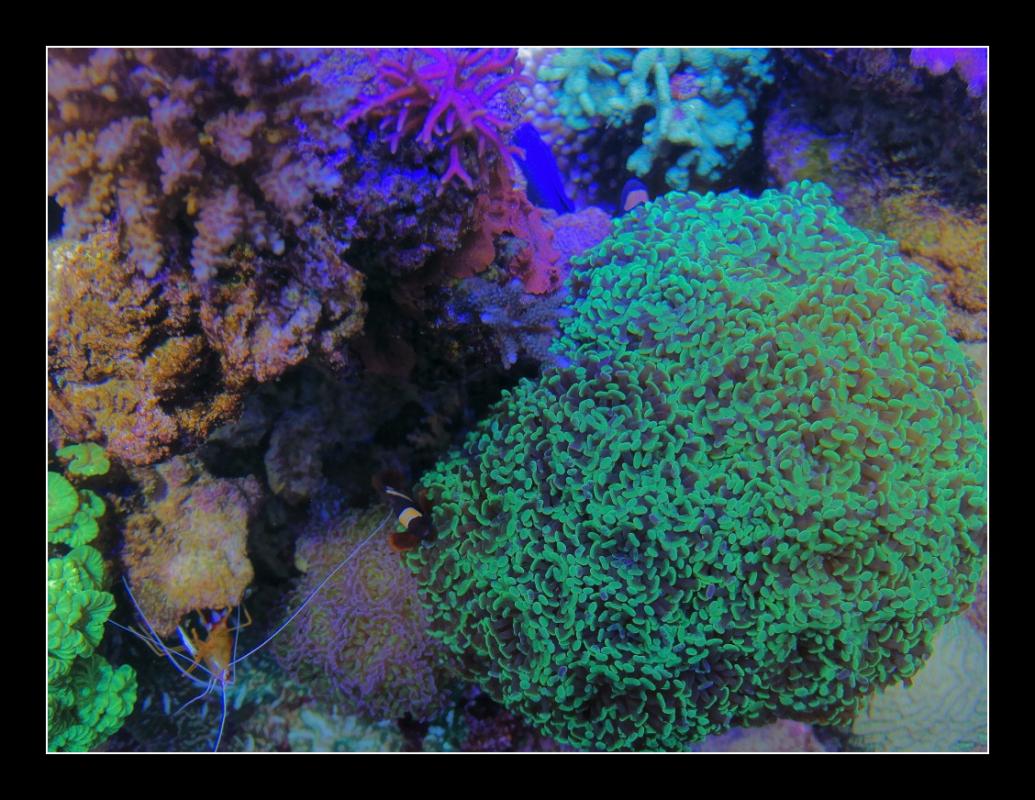 @nonnop: les acanthastrea roses et bleu ils sont très proches de la vitre du bac donc ça aide :)