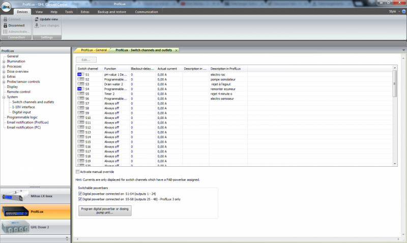 Il me gère l'éclairage (7 prises) (qui peut être dimmable), le brassage tunze (4 pompes), mes niveaux (3), changement d'eau à la "féneant", RAC.